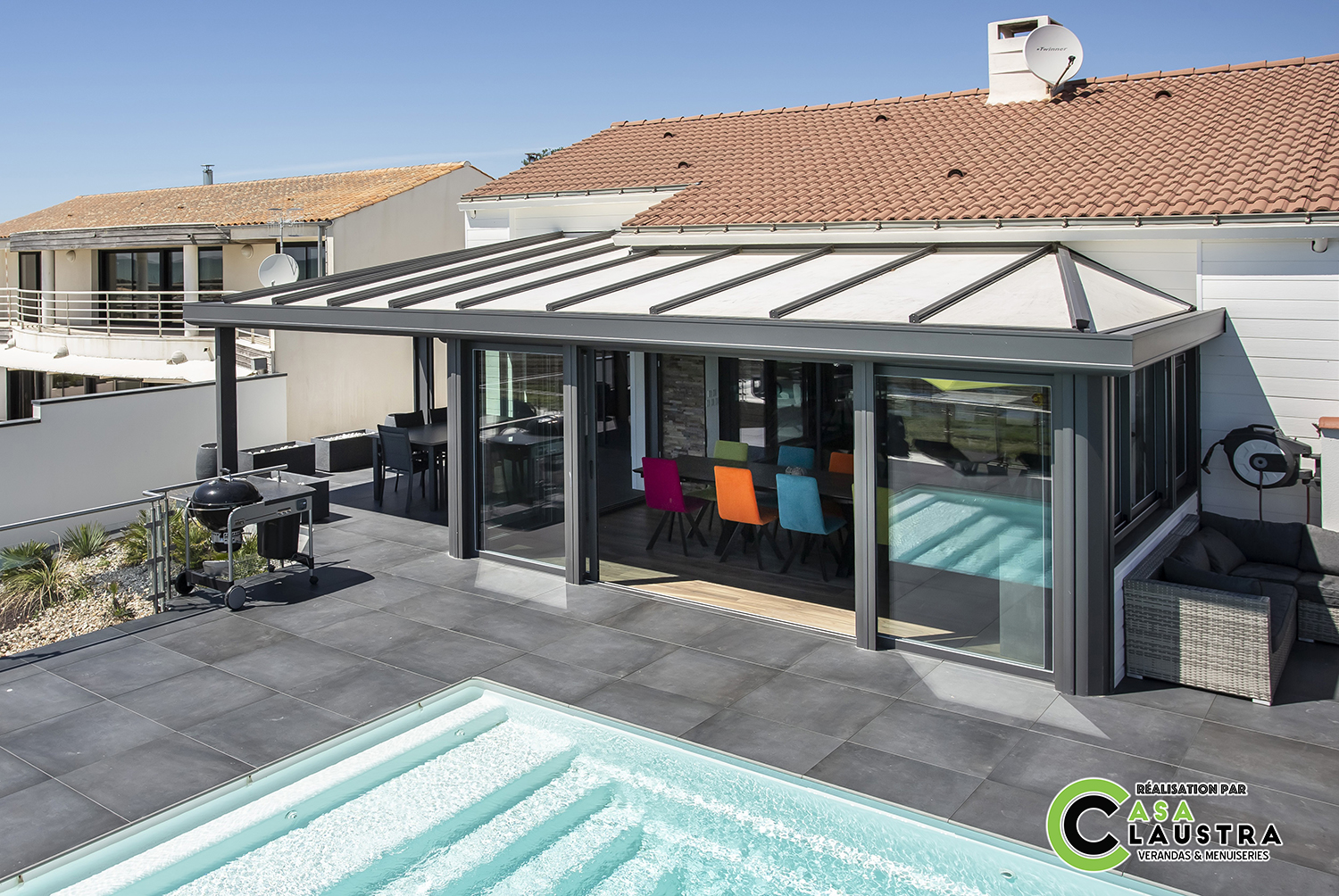 Et pour en profiter été comme hiver, SOKO vous propose des équipements complémentaires tels que l’éclairage intégré, le vitrage de toiture à teinte variable SageGlass, des panneaux de toiture à isolation renforcée…